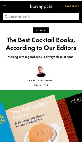 Imbibe January, 2026Bon Appétit July, 2025Food & Wine April, 2025Washington Post December, 2024Drinks International July, 2024Imbibe March, 2024Portland Monthly Fall, 2022Punch August 17, 2022Esquire July, 2022New York Times Cooking May, 2022Imbibe November/December, 2020New York Times September 9, 2020Wall Street Journal August 22, 2020New York Times March 20, 2019EsquireJune, 2018Travel & Leisure AsiaMarch, 2018Imbibe January, 2018Cooking Light December, 2017Gourmet Traveler November, 2017WSJ Magazine September 17, 2017Bloomberg March 9, 2017Cocktail Lovers Spring, 2016Allure March 2016Playboy June 2015Portland Monthly March 2015Bon Appetit December 2014Lucky Peach December 2014GQ June 2014Food & Wine May 2014Imbibe Dec 2013New York Magazine Dec 2013New York Times Dec 14, 2011Men’s JournalDec 2011Wall Street Journal Nov 5, 2011Departures Nov 2011New York Post Sept 7, 2011Vogue Oct 2010GQ Dec 2009New York Times Holiday Magazine 2008